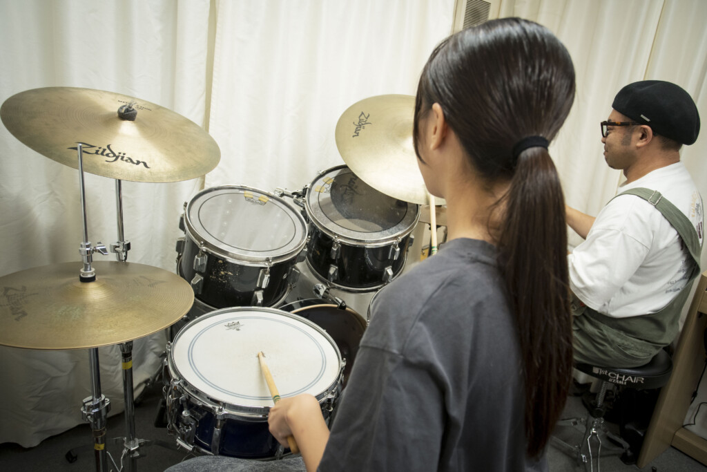 バンド演奏やセッションなどの現場で、周囲の音をしっかりと聴きながら演奏し、その中で自分らしい表現を発揮できるようになります。単にリズムを刻むだけでなく、楽曲全体を支え、音楽に説得力を与えられるドラマーとしての力を身につけていきます。