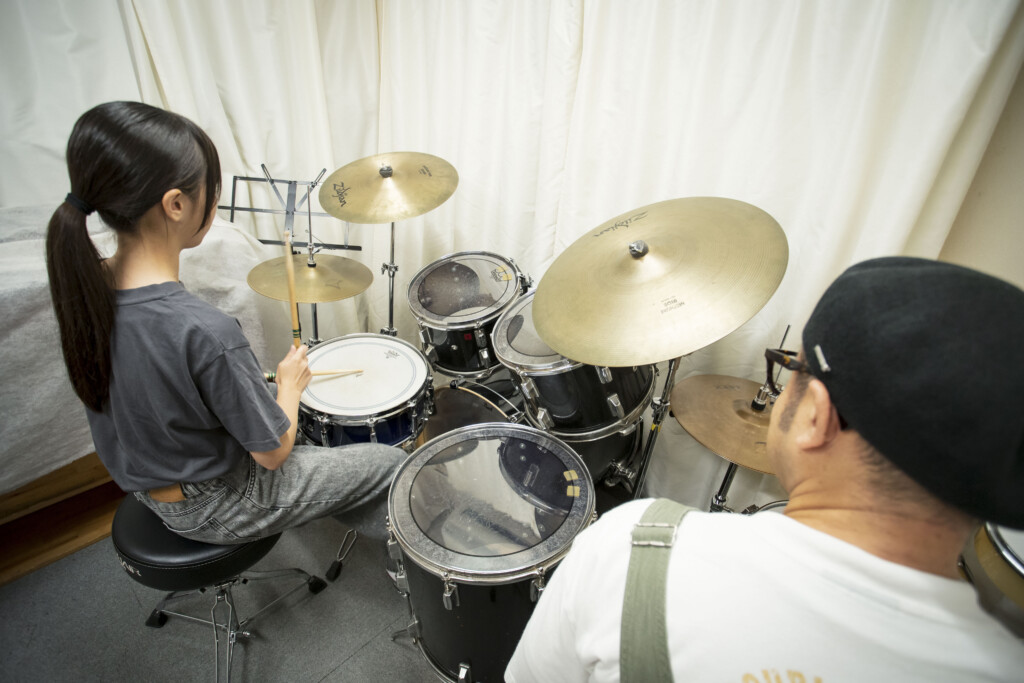 子ども用ドラムセットを使用し、まずは音楽に合わせて自由に、楽しく叩くことから始めます。「正しく叩く」ことよりも、「音楽を感じて楽しむ」ことを大切にし、講師と一緒に音を出しながら自然に音楽の世界に親しんでいきます。