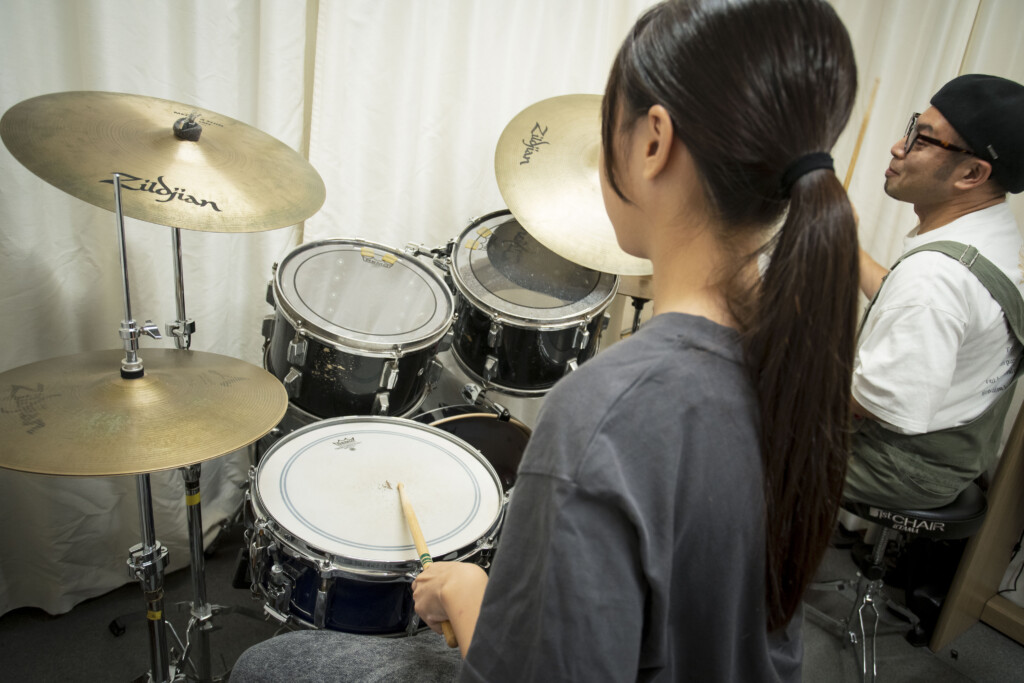 自由に叩く中から、少しずつスティックの持ち方や楽器の扱い方、基本的な奏法へとつなげていきます。無理に教え込むのではなく、できることを大切にしながら、成長に合わせて丁寧にサポートします。
