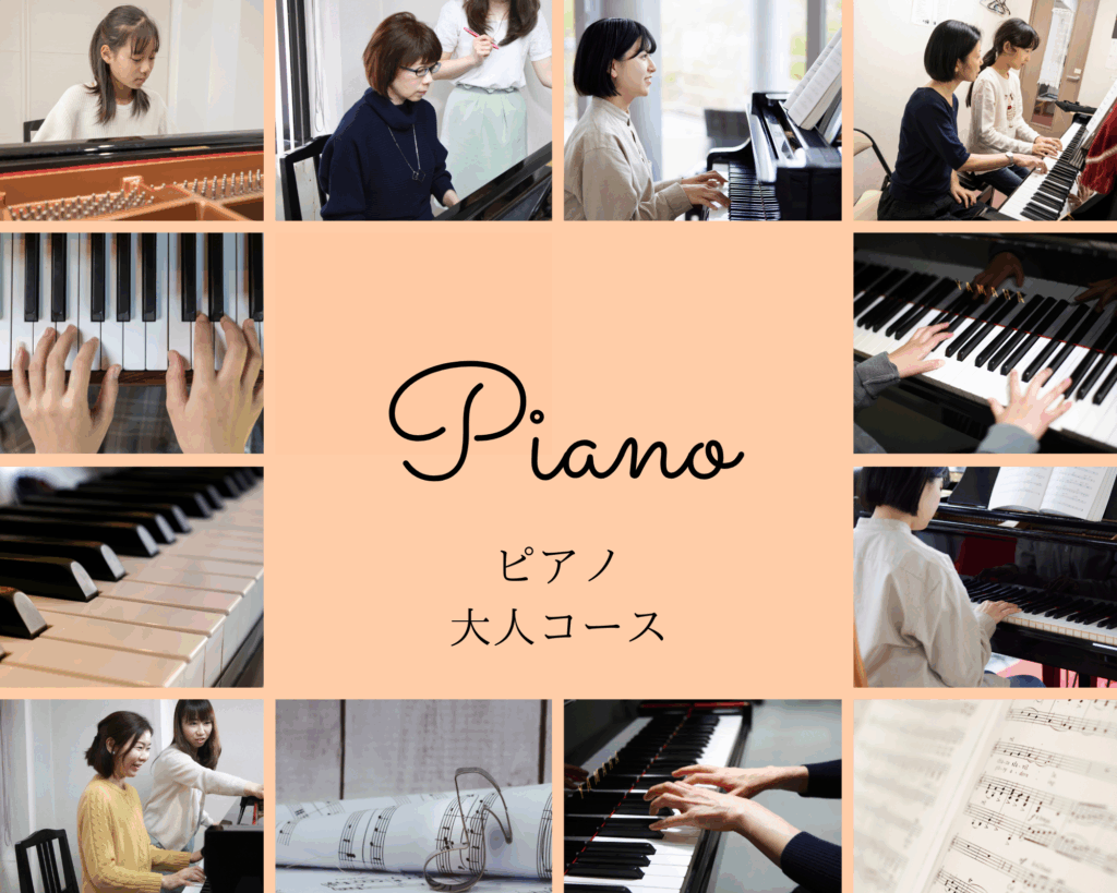 18歳以上の大人のためのコースです。今、ピアノはお家でできる趣味として大人気なので、初めてピアノを習われる方も多くおられます。楽譜の読み方から、指のトレーニング、憧れの曲への挑戦など、講師が丁寧にご説明いたします。楽しみながら続けていける曲選びや練習の仕方など、幅広い知識で生徒さんの希望を叶えていきます。また、ピアノを再開される方にも、楽しんでいただいております。