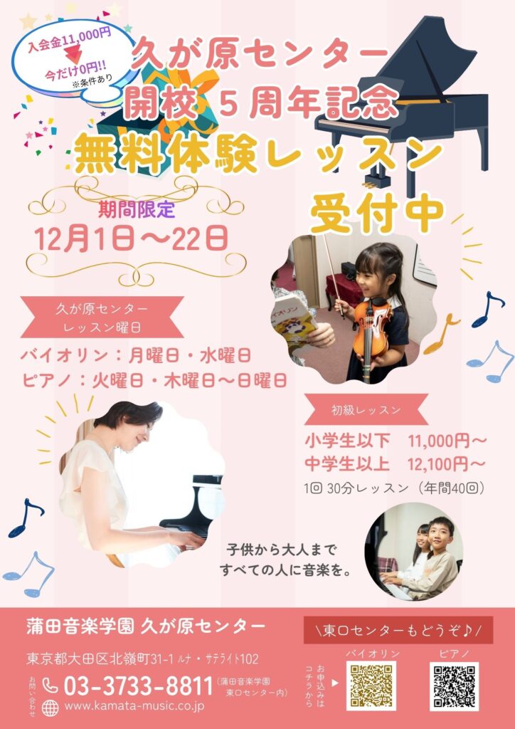 この度、12月で蒲田音楽学園久が原センター校が開校5周年を迎えます!
